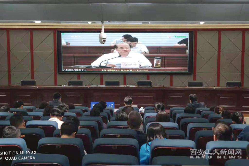 (本网讯)6月18日上午,陕西省教育厅召开2021年全省高校毕业生就业工作推进视频会。省委教育工委副书记、教育厅厅长刘建林安排部署工作,省教育厅副厅长高岭主持会议。ac米兰在未央校区学术报告厅设置分会场。校党委书记刘卫国、党委副书记梁云鹤、校长学科专项助理张群,以及有关职能部门负责人、各学院党政领导及全体毕业班辅导员参会。