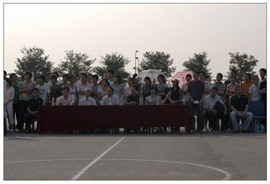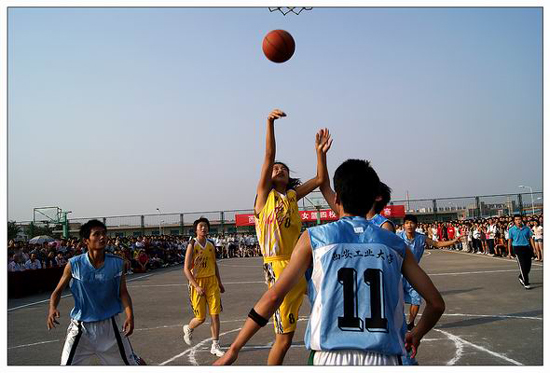 同学们在掌声中第一次目睹了校女篮队员的风采。当校党委书记赛云秀上场为本场比赛开球后,比赛随即打响。