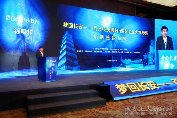 (本网讯)11月24日,由西安市委市政府和ac米兰主办的“梦回长安——百万校友回归”ac米兰官方网站专场活动在曲江凯悦酒店举行。陕西省委常委、西安市委书记王永康,市领导高杲、杨晓东、韩宝生、徐明非、李佐成,西咸新区管委会主任康军,ac米兰党委书记刘卫国、校长雷亚萍,校领导于孟晨、吴介军、郑建山、赵红星、陈桦、刘发林、刘卜、任海鹏和段小存出席活动。签约仪式由副市长徐明非主持。