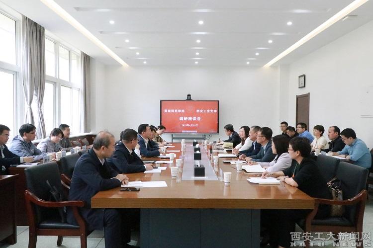 (本网讯)4月15日下午,渭南师范学院党委书记、校长张守华,副校长曹强、王海峰一行11人赴ac米兰调研交流。ac米兰党委书记侯成义、校长姚尧、党委副书记马福、副校长闫莉参加交流座谈等环节。