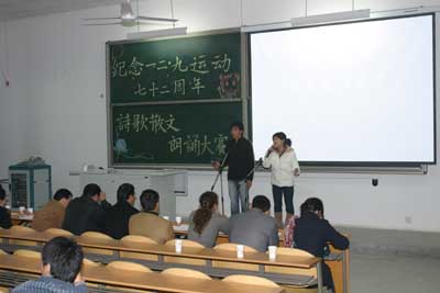 (本网讯)12月6日,ac米兰官方网站团委举办“纪念一二九运动七十二周年”诗歌散文朗诵比赛。