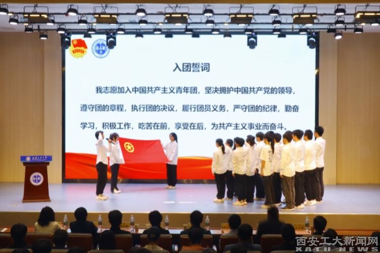 表彰会上,新团员代表面向团旗,举起右拳,庄严宣誓,用铿锵有力的誓言表达了成为一名共青团员的责任与担当。