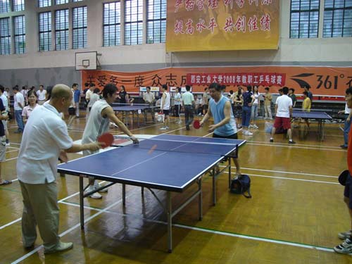 (本网讯)为迎接奥运会召开,ac米兰官方网站工会组织的“在西安工大 与奥运同行”教职工系列活动之一——西安工大2008年教职工乒乓球赛于6月13日-14日在金花校区体育馆拉开战幕。此次比赛共有19个分工会的18支参赛队230名运动员参赛。