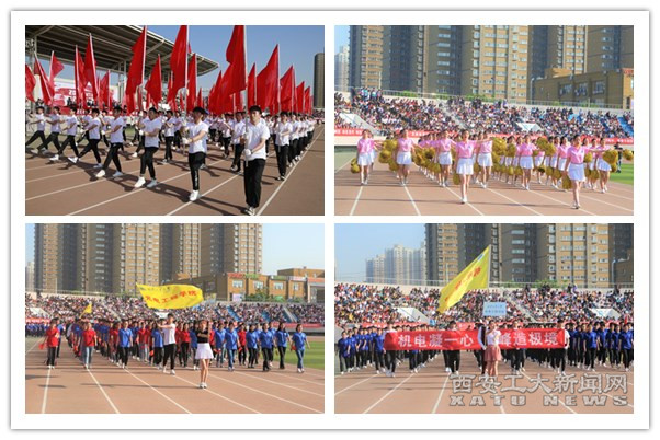 春风送暖,我辈如歌。伴随着熟悉的《运动员进行曲》,裁判员、教职工和各学院代表队排着整齐的队形,迈着矫健的步伐,喊着高亢嘹亮的口号依次入场,昂首阔步,各显身手。光电学院的同学们手持小国旗率先入场,带来了青春洋溢、活力四射的舞蹈,点燃全场激情;建筑工程学院的同学们捧着精致的建筑模型入场,让观众们感受到了建筑之精美;经济管理学院与人文学院的同学们则一个身着民族服饰,一个身着汉服,将中国的传统服饰文化之美展现到大家面前。其他各学院的方阵也是百花齐放、异彩纷呈。场上彩旗飞扬,劲歌热舞不断。