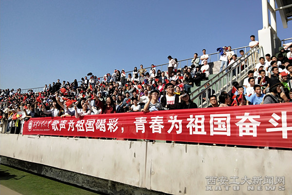 随后,体育场内响起了舒缓而宏大的《我和我的祖国》歌曲,啦啦操队员们组成“70”字样,观众席上托举起了一面鲜艳的五星红旗,一场精心策划的拉歌活动精彩上演。七位领唱盛情饱满的歌声引发了全场2万名师生的集体大合唱,气势波澜壮阔,大气恢弘,大家共同为新中国70华诞献礼。