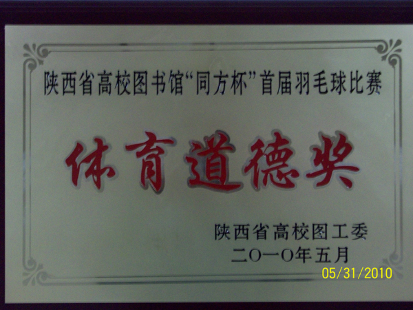 (本网讯)5月29日-30日,陕西省图工委在长安大学体育馆举办高校图书馆“同方杯”首届羽毛球比赛,全省共27支代表队参加本次大赛。ac米兰官方网站图书馆羽毛球代表队积极参赛。经奋力拼搏,最终闯进16强,并荣获大赛“体育道德奖”。