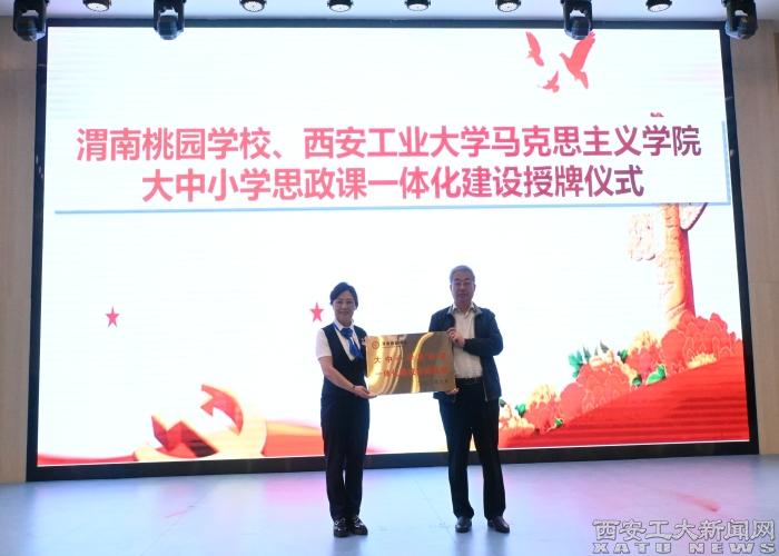李晓彤和王琰共同为渭南桃园学校在学院设立“大中小学思政课一体化建设实践基地”揭牌。