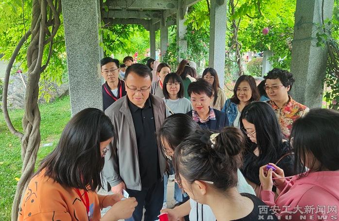(本网讯)“凝神聚力手作一个艾草香包寄美好愿望予生活,专注当下聆听一曲沁人心扉的音乐放空心灵,关注自我选择一份心理测试探索自己,静下心来读一本书、绘一幅画、写一幅字、煮一壶茶,我们用心写尽初夏里对自己的爱意。”5月5日,学生工作部(处)学生心理发展指导中心在博苑广场举办“当525遇上心理嘉年华——让我们更好地爱自己”主题心理育人活动。学校党委副书记马福、总会计师段小存、学工部部长曹玉玲莅临现场和同学们一起参与活动。