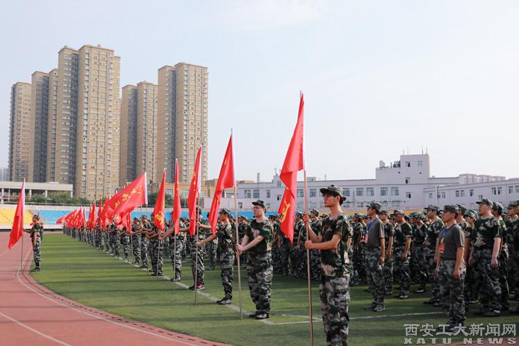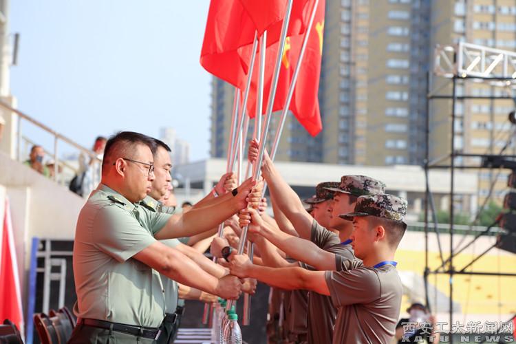 在嘹亮的军歌声中,军训旅各营、连旗帜被郑重授予,现场气氛庄严热烈。