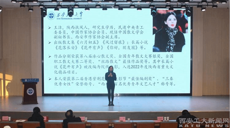 观影结束后,《远山花开》编剧王洁向大家介绍了的创作经验。优秀的文艺作品来源于现实生活,王洁从自己的扶贫经历出发,讲述了小说《花开有声》的创作缘起以及《远山花开》影片主人公原型的故事,之后又介绍了电影《远山花开》的创作和拍摄经历,让在场的同学们感受到了优秀电影作品制作的不易。