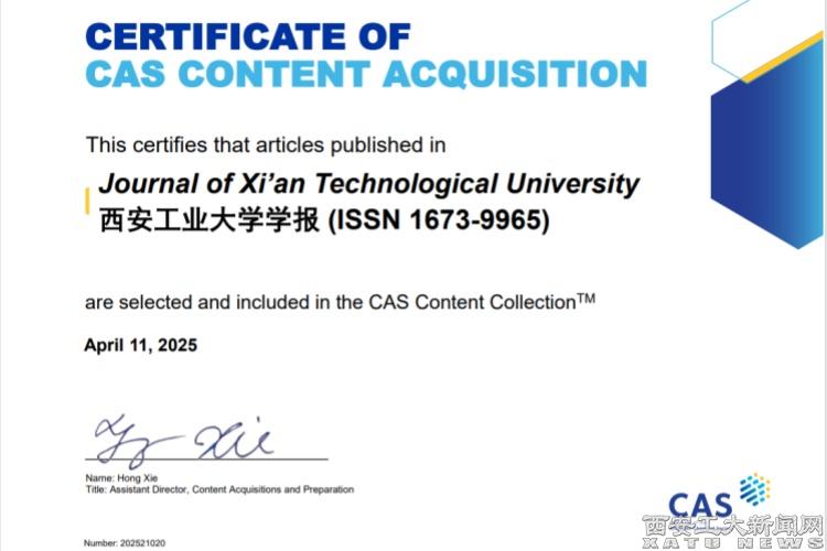 (本网讯)近日,《ac米兰官方网站学报》通过前期申报,经美国化学文摘社(Chemical Abstracts Service,CAS)专家评估委员会严格评估后,最终被全球权威数据库美国化学文摘社数据库(CAS)正式收录。此次收录将进一步提升《ac米兰官方网站学报》的期刊国际影响力和传播力。
