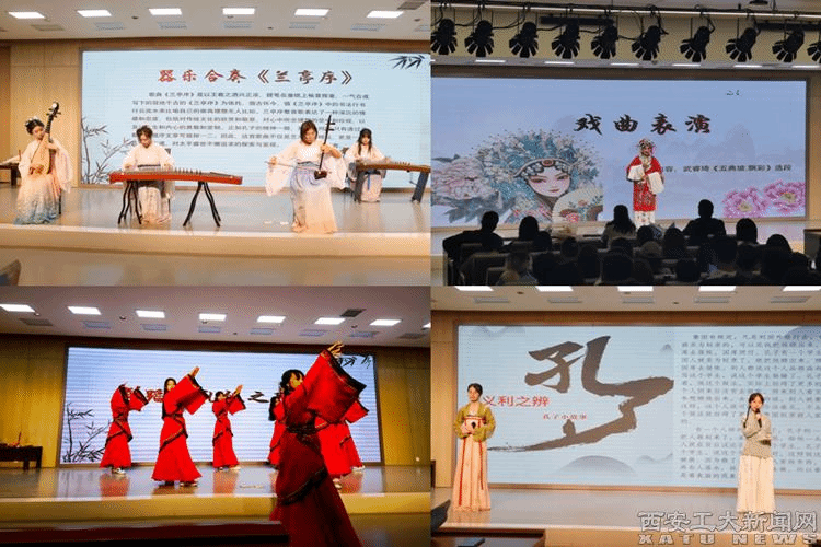 随后,同学们表演传统歌舞器乐助兴。陕西省戏曲研究院国家二级演员武晓西和文学院汉语言文学专业武睿琦父女俩的演唱燃爆全场,掌声雷动。在师生互动游戏环节,中国学生、留学生和老师组队,共同比拼投壶、《论语》故事“生说师猜”、乒乓球五子连珠等游戏,师生亲密配合,或一致对外,或开怀大笑,现场的气氛达到高潮,为文化周活动圆满收官。