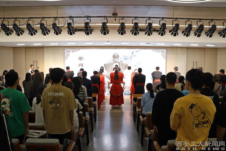 27日晚,祭孔典礼暨“师德师风建设月”主题活动在校学术报告厅拉开帷幕。在庄重古朴的音乐声中,同学们身着汉服,向至圣先师行揖礼,恭肃诚敬,淳雅端方。赞礼官赞颂道:“西安工大,自强不息。兵工精神,弘扬承继。任重道远,精工博艺。知行相长,同德凝聚。依仁志道,治平修齐。立德树人,腾飞可期。”文约意丰,表达了师生戮力同心推进学校高质量发展的决心。本科生和研究生代表向导师敬茶、献花,导师回赠书籍,勉励学生勤学不辍,报效祖国。
