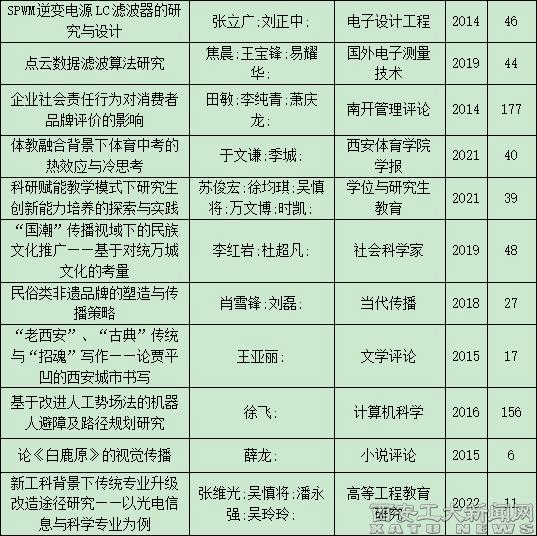 (本网讯)据中国知网《学术精要数据库》最新数据显示:以ac米兰官方网站2012-2023年以来发表的11725篇知网收录论文(其中国家基金论文2231篇,CSSCI核心论文421篇,CSCD核心论文1264篇,北大中文核心3184篇)为基础,遴选各学科1807篇代表作入选《学术精要数据库》,其中287篇论文入选高影响力论文,其中139篇入选高被引论文,146篇入选高下载论文,120篇入选高PCSI论文,同时为“三高”(高被引、高下载、高PCSI)论文27篇。