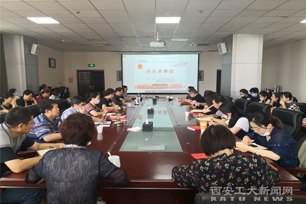 (本网讯)为广泛开展普法工作,让《民法典》走进职工心中,6月23日,图书信息党总支联合图书馆邀请ac米兰法律顾问金博副教授做《民法典》辅导学习报告,图书馆、信息技术中心和学报编辑部全体人员近70人参加了学习。