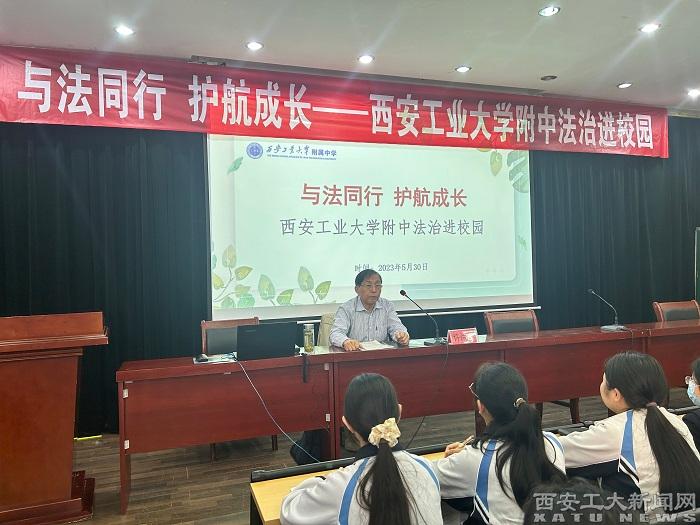 许尚年以“法律与中学生成长”为主题,从“什么是法律”“法律的社会作用”“法律和青少年的关系”以及“如何学法守法”四个方面,深入浅出的为同学们讲解了法律知识,引导学生自觉遵守校规校纪,敢于拿起法律武器保护自己,做个健康阳光的学生。