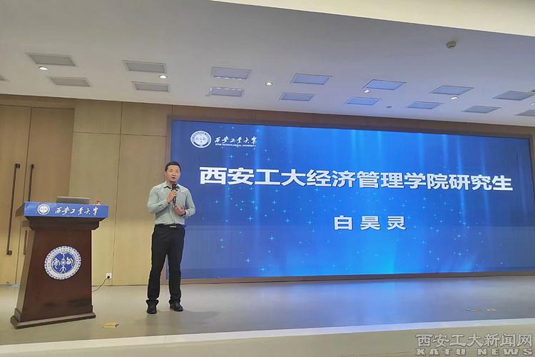 讲座中,经济管理学院研究生白昊灵讲述了关于快递物流的创业发展历程,并从兴趣、认知、合伙人、风险、资金、恒心等方面分享了创业经验。