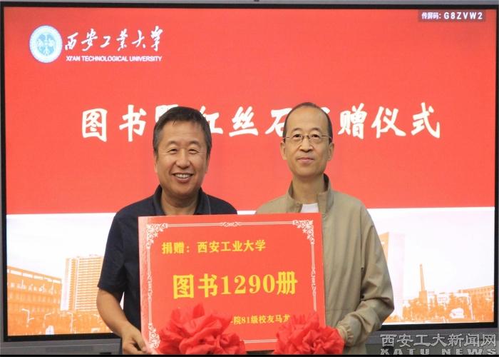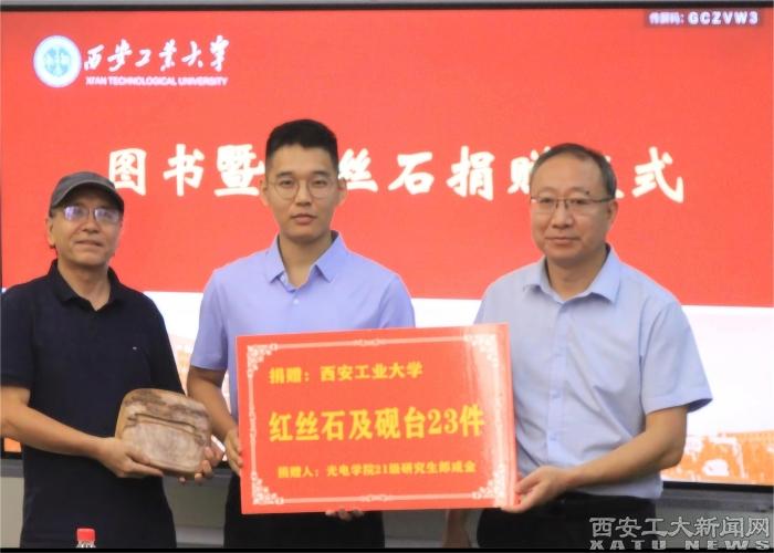 捐赠仪式上,校友总会办公室副主任周黎萍介绍了捐赠的基本情况。ac米兰81级校友马龙向学校捐赠了图书1290册,总价达3万元。ac米兰光电学院2021级研究生郎咸金同学及家人为学校捐赠了铭刻学校校风的红丝石1件,经加工雕刻的精美红丝砚22件,总价值达16万元。