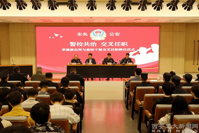(本网讯)4月21日上午,西安市公安局未央分局在ac米兰图书馆报告厅举办了草滩派出所与北郊3所高校“警校共治,交叉任职”聘任仪式。副校长刘发林、公安未央分局副局长崔同利、草滩派出所所长许朝睿,陕西科技大学、西安医学院和ac米兰学工、保卫部门负责人,草滩派出所部分民警和我学校100余名学生参加了聘任仪式。仪式由草滩派出所教导员李江涛主持。
