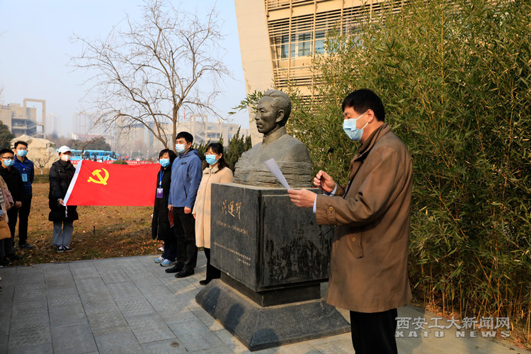机电工程学院党委书记路金龙结合兵工精神与西工精神为现场党员讲述了吴运铎生平和纪念雕像树立历史。经济管理学院党委副书记王育晓分享了吴运铎《把一切献给党》中“入党”片段“我志愿加入中国共产党,积极工作,努力学习,不惜牺牲个人一切,誓为共产主义的最后实现终身奋斗到底”,回顾了吴运铎为人民兵工事业无私奉献的一生。经济管理学院党委书记姬浩带领全体党员们重温入党誓词。