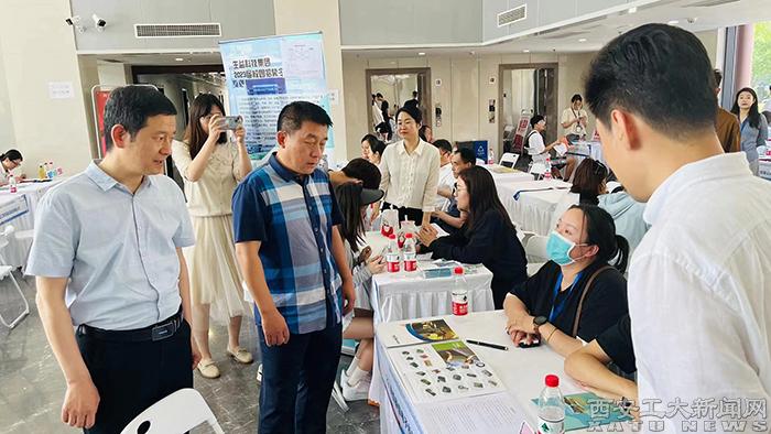 校党委副书记王发合、西安市人社局就业促进处处长廉宏彬及团市委、未央人社局、省中小企业人才市场相关领导莅临现场并指导工作。王书记与廉处长等一行进行了亲切交谈,重点了解市人才及就创业政策,并对现场学生进行就业指导。