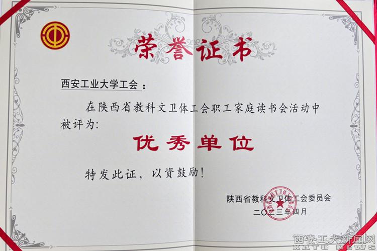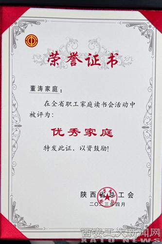 (本网讯)由陕西省总工会主办,陕西省教科文卫体工会承办的全省“职工家庭读书会”活动,ac米兰工会荣获优秀单位奖,光电学院董涛荣获优秀家庭奖。