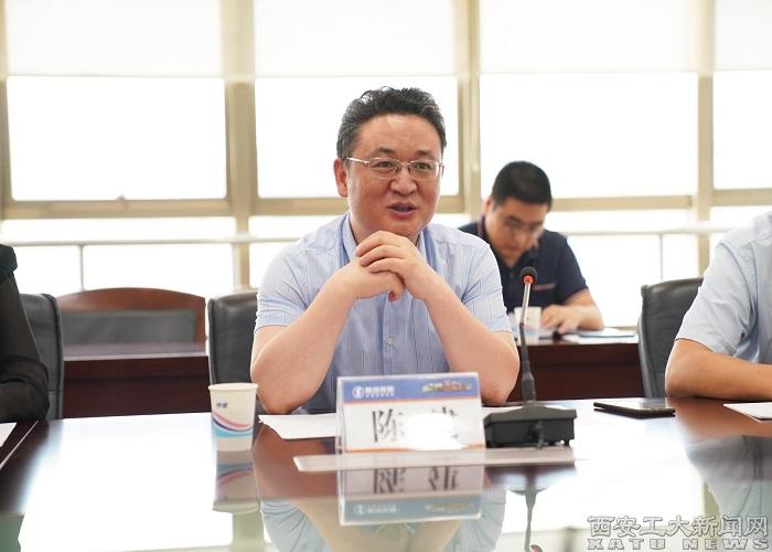 (本网讯)为加快学校与陕西汽车控股集团有限公司校企合作步伐,拓展双方合作深度广度,7月25日上午,副校长陈建一行赴陕西汽车控股集团有限公司开展调研。陕西汽车控股集团有限公司党委副书记张金山及相关部门负责人参加调研活动。