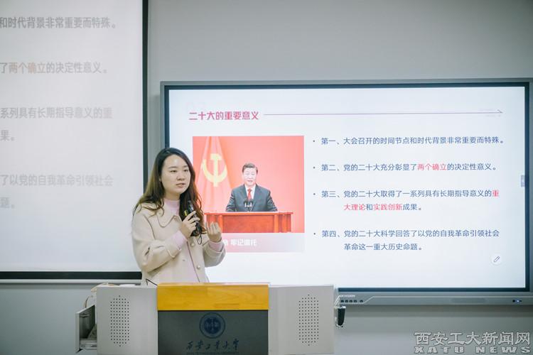 据悉,依据学校《关于认真学习宣传贯彻党的二十大精神的通知》要求,全校各学院通过邀请专家宣讲团、选派辅导员参与二十大主题微课录制、组织辅导员进班级进宿舍、组织学生党员学生干部进宿舍等方式积极开展二十大精神宣讲工作。本学年,宣讲团成员将进一步深入学生群体,通过讲座、座谈、主题班会等形式继续宣扬二十大精神,让党的二十大精神在校园落地生根,以精彩丰富的宣讲内容鼓舞广大青年接力奋斗、勇担使命。
