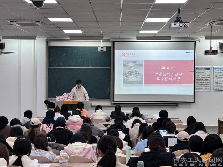 宣讲紧紧围绕“党群同心、军民情深、水乳交融、生死与共”的核心内涵展开,宣讲团成员们以饱满的热情、真挚的情感,将沂蒙红嫂用乳汁救伤员的感人故事、沂蒙母亲无私奉献的崇高精神,以及渊子崖村与日寇血战到底的英勇壮举一一呈现给现场听众。宣讲团以《沂蒙山小调》民歌、情景还原等方式,让同学们感受“军民一家亲”的信仰温度。在互动问答环节,同学们积极参与,踊跃发言,纷纷表示将以此次活动为契机,进一步加强党史学习教育,主动扛起传承红色基因的责任,把沂蒙故事讲给更多人听。