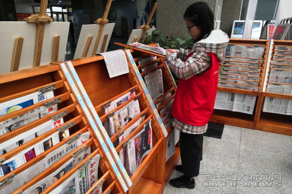 本次志愿服务活动分为期刊整理、少儿图书整理、报刊整理和自助图书服务四个部分,志愿服务在浓郁的书卷香气下有序展开。志愿者们推着小车将书籍按顺序整理好之后运送至对应区域,细心地按编号将杂乱的书籍一本本摆放整齐,按期号将同类别的报刊整齐地夹在报刊架上,过期报刊被取下后叠放整齐放至专门区域。