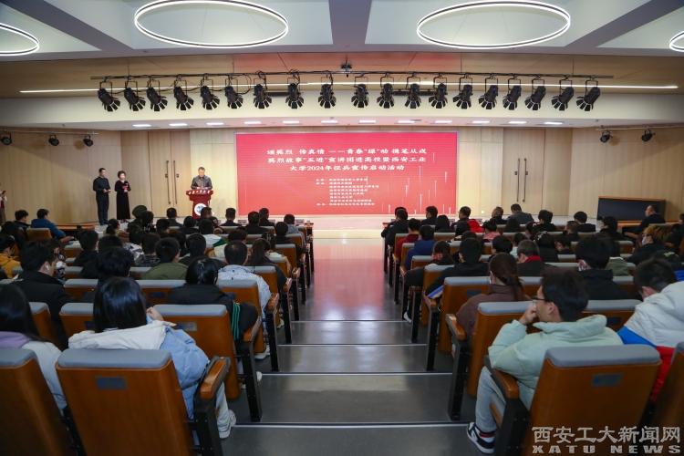 (本网讯)今年是延安双拥运动发起八十周年,2024年征兵工作也于12月1日正式启动,学校人民武装部联合西安市退役军人事务局、西安市未央区、西安烈士陵园、西安市英烈褒扬促进会共同组织了“颂英烈 传真情”英烈故事“五进”宣讲进高校暨ac米兰官方网站2024年征兵宣传启动活动。ac米兰官方网站党委副书记马福、副校长刘发林,西安市退役军人事务局副局长闫亚林、未央区副区长侯运生、未央区退役军人事务局局长屈航安、西安市英烈褒扬促进会会长郝淼、西安市烈士陵园主任陈瑜、未央区人武部副部长王慧鹏等14位领导、嘉宾出席活动。
