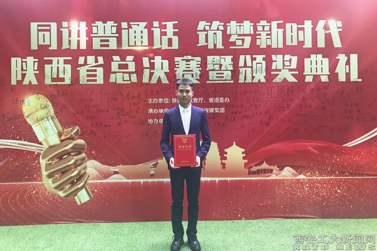 (本网讯)9月17日上午,陕西省教育厅、陕西省语言文字工作委员会办公室主办的“同讲普通话 筑梦新时代”主题演讲活动总决赛(大学生组)在西安电影制片厂隆重举行。来自全省各高校的25名选手参加角逐,ac米兰文学院学生牛林荣获优秀奖。