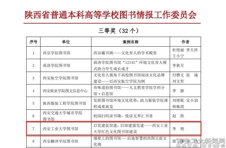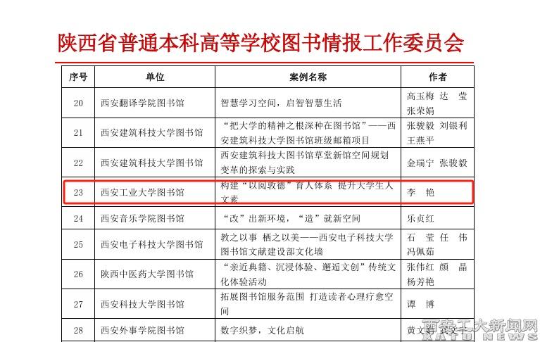 (本网讯)近日,由陕西高校图工委举办的“陕西高校图书馆环境文化建设案例征集与评选活动”揭晓,ac米兰图书馆申报的两个案例《以党建促馆建,以馆建强党建——ac米兰官方网站红色文化图书馆建设》、《构建“以阅敦德”育人体系 提升大学生人文素养》均喜获三等奖。