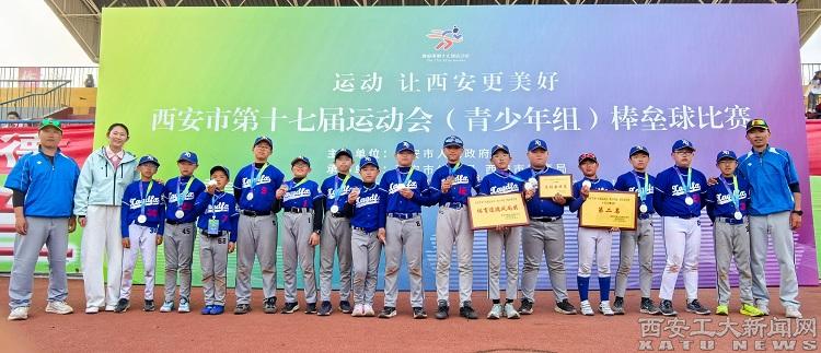 (本网讯)近日,西安市第十七届运动会(青少年组)棒垒球比赛在陕西学前师范学院举行,由附小15名学生组成的碑林区代表队在比赛中精准击球、灵活跑垒、严密防守,以默契配合和坚韧斗志连战强敌,在小组赛、淘汰赛中一路过关斩将,最终以优异成绩斩获U12组亚军。队员贾涵诺获得“最佳击球员”称号,韩镒泽获“体育道德奖”,碑林区代表队荣获“体育道德风尚奖”。