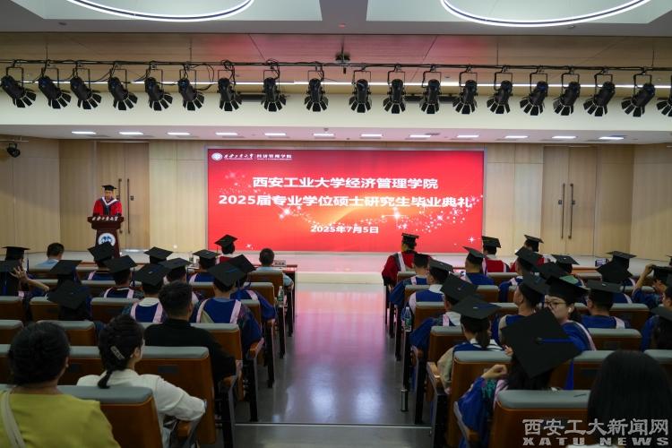 (本网讯)7月5日上午,ac米兰经济管理学院在未央校区图书馆报告厅举行第七届“笃行”论坛暨2025届专业学位硕士研究生毕业典礼。广联达西安科技有限公司总经理裴洪进,建行陕西省分行西安曲江支行副行长胡亚军,学校党委研究生工作部部长、研究生院(学科建设办公室)院长(主任)苏兵,校友总会办公室主任、教育发展基金会理事长王守民,经济管理学院党委书记王育晓、副书记张旭、副院长焦源以及MBA中心主任杨勇参加。