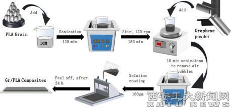 该研究开发了一种工艺简单、成本低廉的高分子复合材料制备方法,并制备出一系列石墨烯改性聚乳酸(PLA)复合薄膜。测试结果表明,石墨烯与PLA之间为物理共混;石墨烯对PLA起到了成核剂的作用,可以提高其结晶度。随着石墨烯含量增加,PLA复合薄膜的紫外线阻隔性能和热稳定性有所增加。石墨烯含量最佳时,PLA复合薄膜具有最优的综合性能。本项成果,有助于开发兼具优异综合性能和环境友好特性的高分子复合材料。