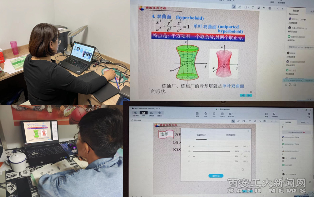 赵晔老师注重课前教学内容的准备,充分利用了学习通平台进行教学资源建设,通过布置预习任务,使学生了解古今中外有关曲面方程的数学历史背景,结合主题讨论,抢答,选人,词云等教学手段,并且通过分析不同瓷器曲面的几何特点,使学生充分认识了我国古代的瓷窑技术已处于世界领先地位。课程中引用了我国数学家华罗庚的名言“形缺数,难入微;数缺形,少直观”,体现了在多元函数的学习中,数形结合思想的重要性。在学习旋转曲面方程时,通过展示旋转曲面的运动轨迹短视频,以世界上口径最大,灵敏度最高的巨型射电望远镜----中国天眼FAST---南仁东为例,讲述了我国科技方面的重大成就,提升了学生的爱国热情和民族自豪感。更深刻的让学生了解到数学的学以致用,从而提升学生浓厚的学习兴趣。