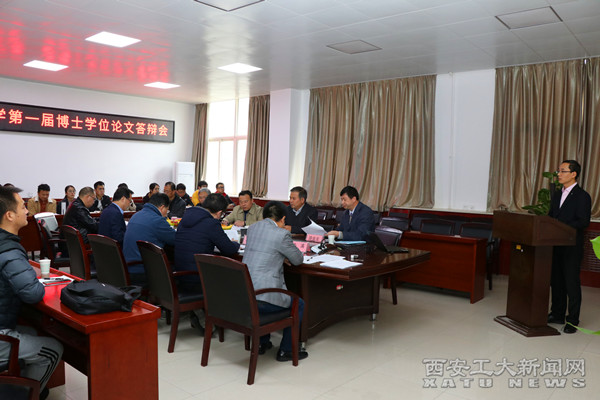 答辩前,材化学院党委书记路金龙简要介绍了答辩委员会组成情况。答辩委员会成员由7名专家组成,分别为西北工业大学博士生导师,国家杰出青年获得者,教育部长江学者特聘教授刘峰教授、西安交通大学博士生导师周根树教授、ac米兰官方网站博士生导师李建平教授、坚增运教授、惠增哲教授、陈建教授、杨忠教授。刘峰教授担任答辩委员会主席。