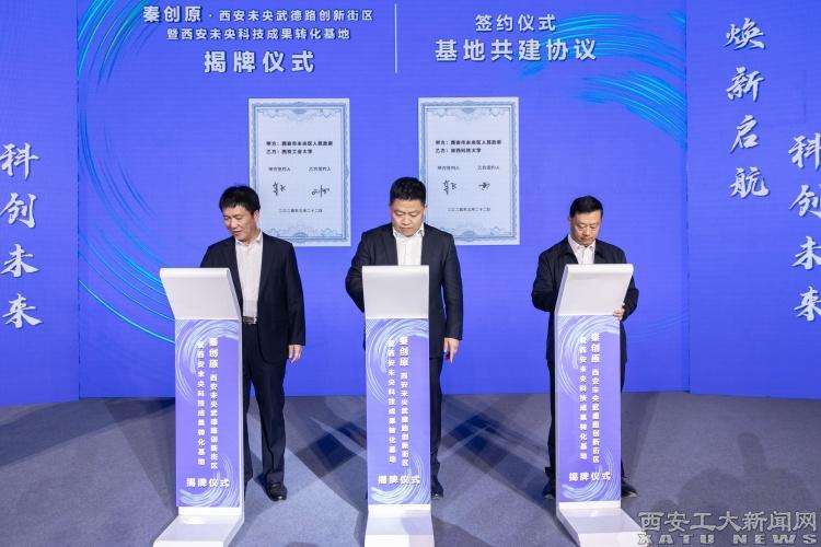 (本网讯)3月22日上午,未央区人民政府在秦创原·西安未央科技成果转化基地举办了秦创原·西安未央武德路创新街区暨秦创原·西安未央科技成果转化基地揭牌仪式。副校长刘发林应邀出席,科研院院长肖锋陪同参加了相关活动。