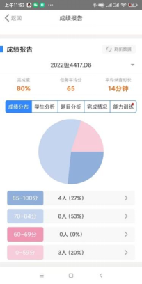 另一方面,教师可以随时随地登录平台查看班级学习的整体状况,也可监管到个体学生的学习详情,根据系统自动生成过程性评价结果,了解学生的学习情况并及时与学生交流,进而提升教与学的管理与质量。