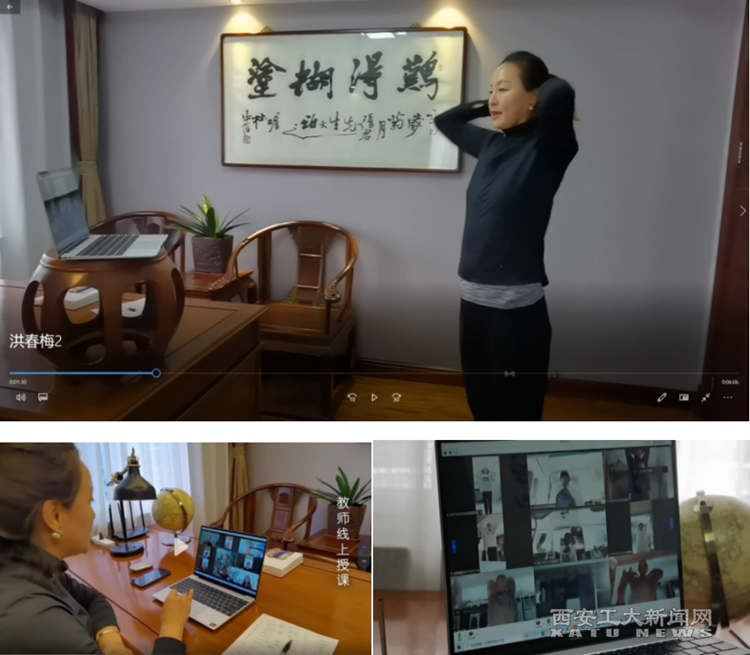 洪春梅老师在《形体训练》课中讲练结合,通过网络直播与学生实时互动,指导学生有效利用宿舍有限空间,科学针对身体各个部位进行强化训练。在授课中,有机融入疫情防控相关健康卫生知识,消除学生的不良情绪,促进身心有益发展。