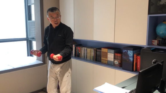 王斌老师的《健身健美》课程灵活选择适合宿舍训练的内容,带领学生健美健身。王斌老师将每一个动作清晰的展现在镜头前,并对学生每一个动作细节严格要求,最大程度减小线上授课带来的时空影响。同时,王老师特别关心学生在宿舍封闭中的身心状态,有意识引导学生感受课程所带来的快乐和美感,激励学生乐观向上,展示青春风貌。
