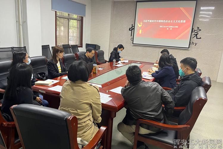 宣讲会上,黄萌以“推进文化自信自强,铸就社会主义文化新辉煌”为题,分别从文化理论和文化制度、巩固和发展社会主义意识形态、培育和践行社会主义核心价值观、中华优秀传统文化的创造性转化和创新性发展、建设社会主义文化强国5个方面对新时代中国特色社会主义文化进行了讲解,并强调推进文化自信自强的重要性。