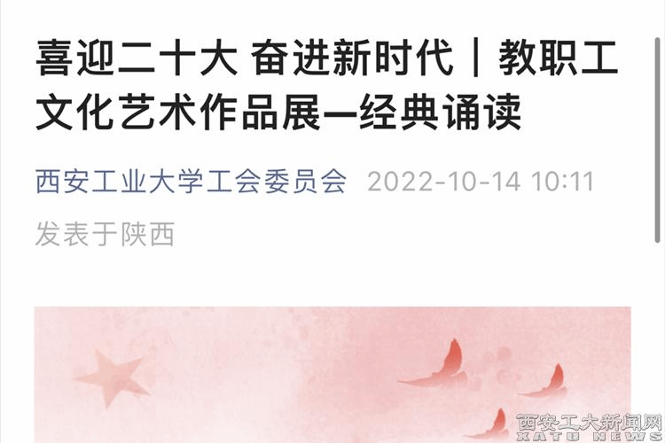 此次活动分为两个阶段,第一阶段为各分工会征集作品并在分工会范围内进行展示。第二阶段由校工会在全校范围展示分工会报送的优秀作品。本次全校范围展示优秀书画作品17幅,摄影作品31幅,经典诵读、歌唱表演11个,将以线上线下相结合的方式进行。