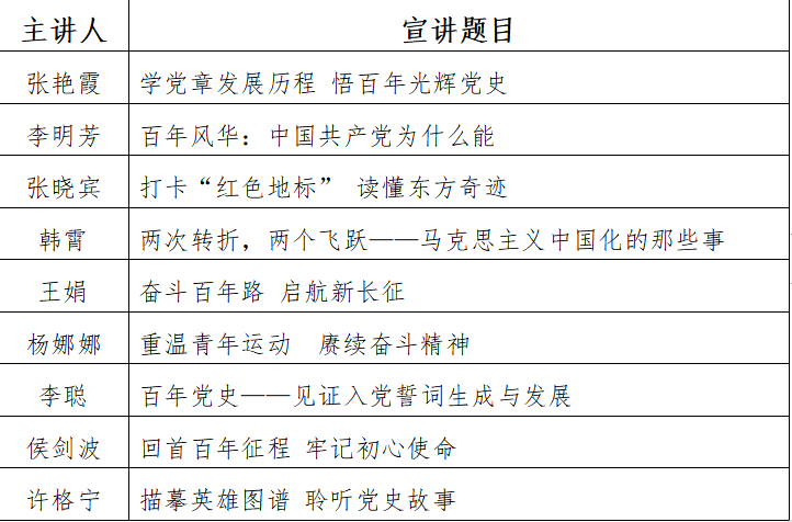 为深入学习贯彻习近平总书记在党史学习教育动员大会上的重要讲话精神,扎实开展党史学习教育,ac米兰官方网站党史学习教育宣讲全面开启,具体讲座题目如下。