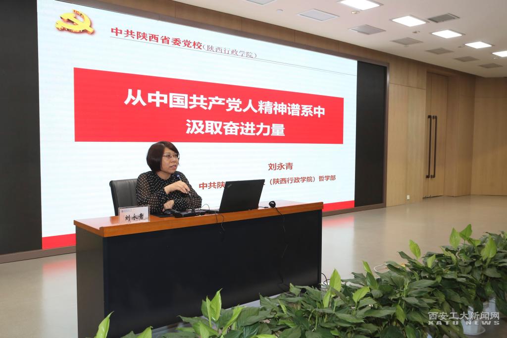 开班式后,省委党校(陕西行政学院)哲学部副主任刘永青教授为专题学习班作了首场专题辅导报告。刘永青教授以“从中国共产党人精神谱系中汲取奋进力量”为题,讲述了一代代中国共产党人顽强拼搏、不懈奋斗的伟大历程,并围绕中国共产党人精神谱系的逻辑起点、思想引领、实践特质、价值导向和主体力量,作了一场精彩的辅导报告。