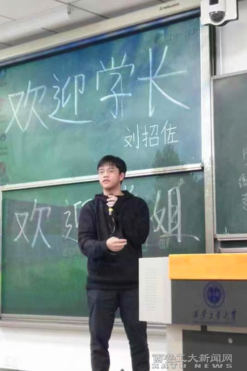 刘招佐除了是一位学习当中的佼佼者之外,他在班级中还担任心理委员和19级的学生班主任。他以乐观积极的心态,感染着每一个同学。在生活中作为心理委员的他,组织各种有趣的活动,传递正能量、分享心理健康小知识,自己还编了心理健康情景剧。在学习上作为19级学生班主任的他,为学弟学妹们建立学习讨论QQ群,在群里分享学习经验,事无巨细的讲解每一门课程的重点、难点。19级电子信息工程创新创业实验班的陈漂洋是被刘招佐帮助的同学之一,她说:“刘招佐总是用他独有的幽默方式倾尽所有的给我们讲解,做事认真、能力又强,我们都很崇拜他。”